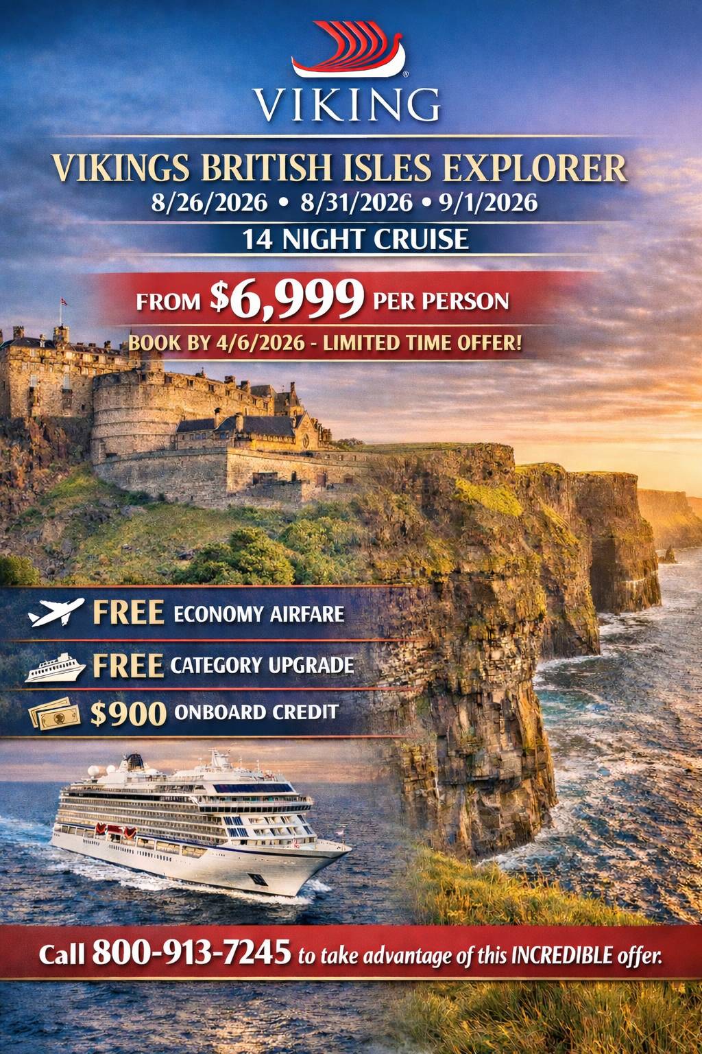2 Incredible Viking Cruise Deals — Air, Upgrades & Onboard Credit Included An Incredible offer for a 14-Night Viking Ocean Cruise - Call 1-800-913-7245 take advantage of this special opportunity. One low price on an incredible Viking River Cruise! Don't miss out on this opportunity. 1-800-913-7245 - Call Today 7987 W Carroll Rd, Carrollton, GA 30116Want to change you receive these emails?Update Your Preferences • Unsubscribe • Opt-out of preference-based advertising